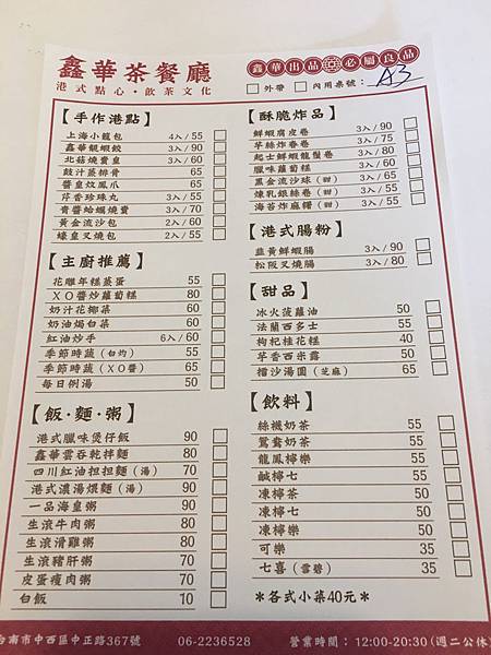 中正路與金華路口開了ㄧ間鑫華冰室(港式茶餐廳)料理價位很平價,餐點也不錯吃喔以下是這間的介紹 菜單如下: